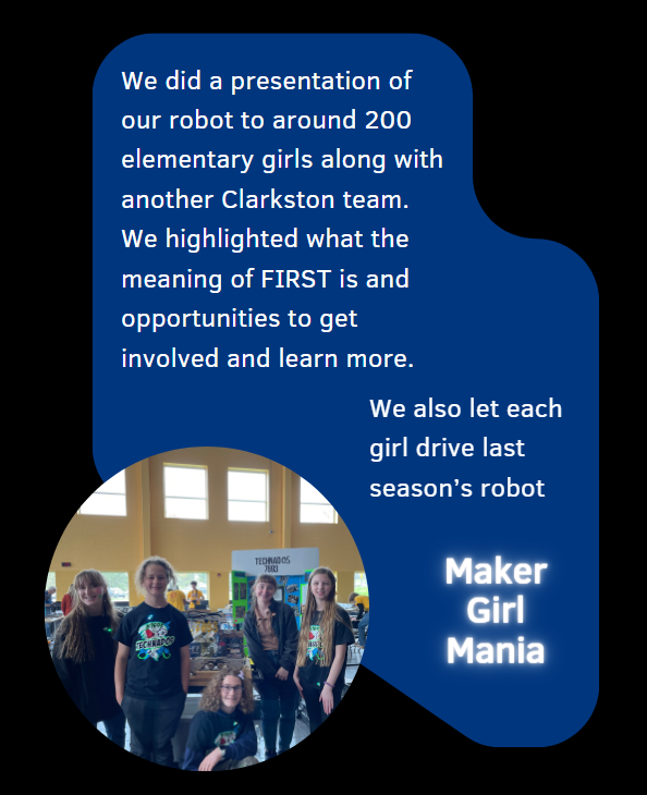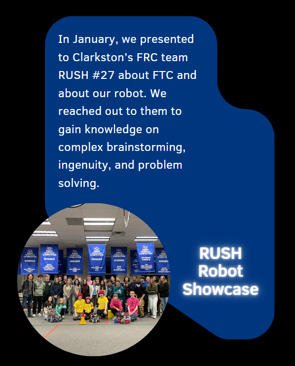 in Clarkston and help bring kids from different events we have done into FIRST. We, to this day, aspire to continue to fulfill these tasks.